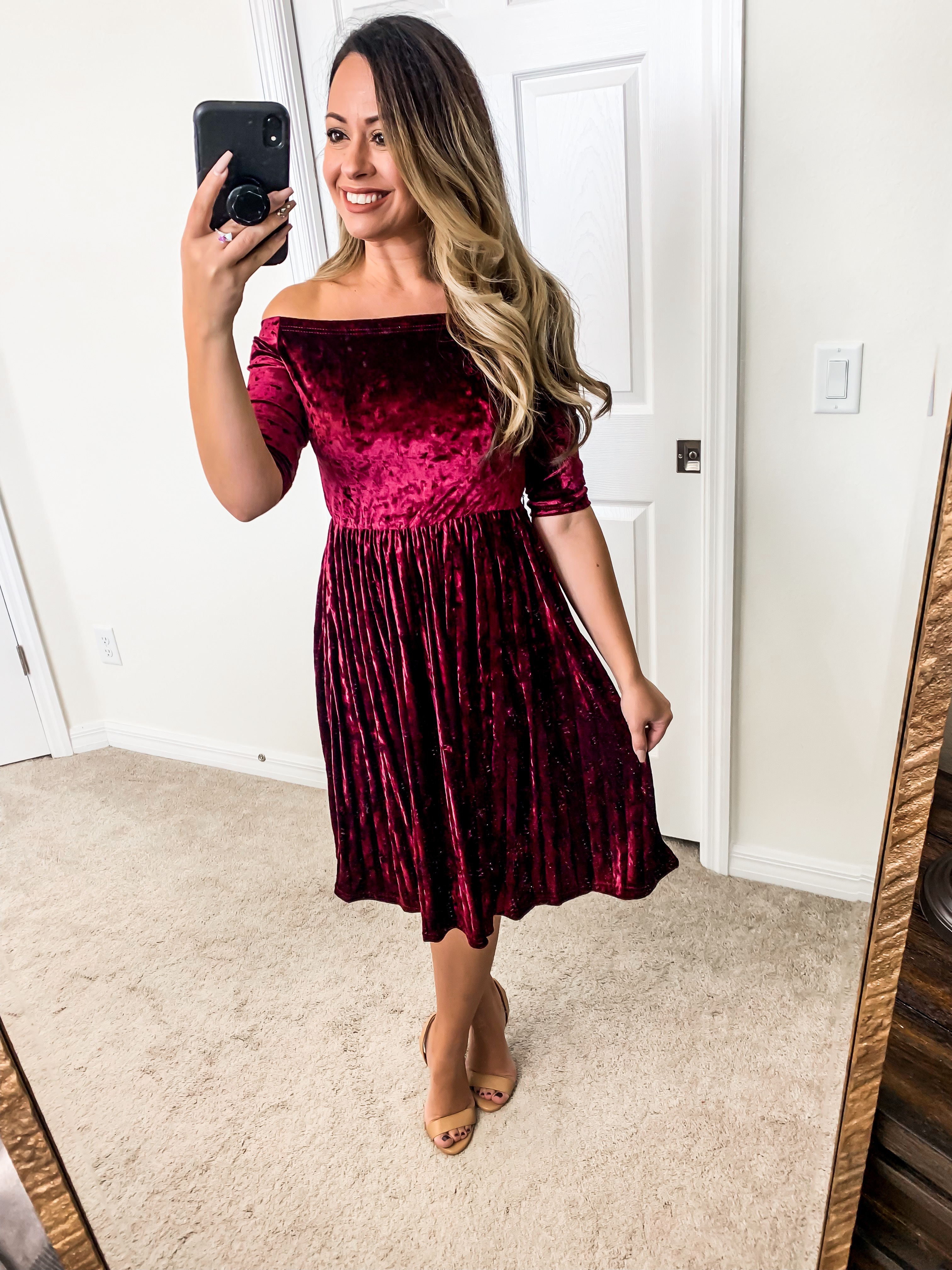 All the feels…literally. Crushed velvet feels like the holidays and this dress is perfect for season!