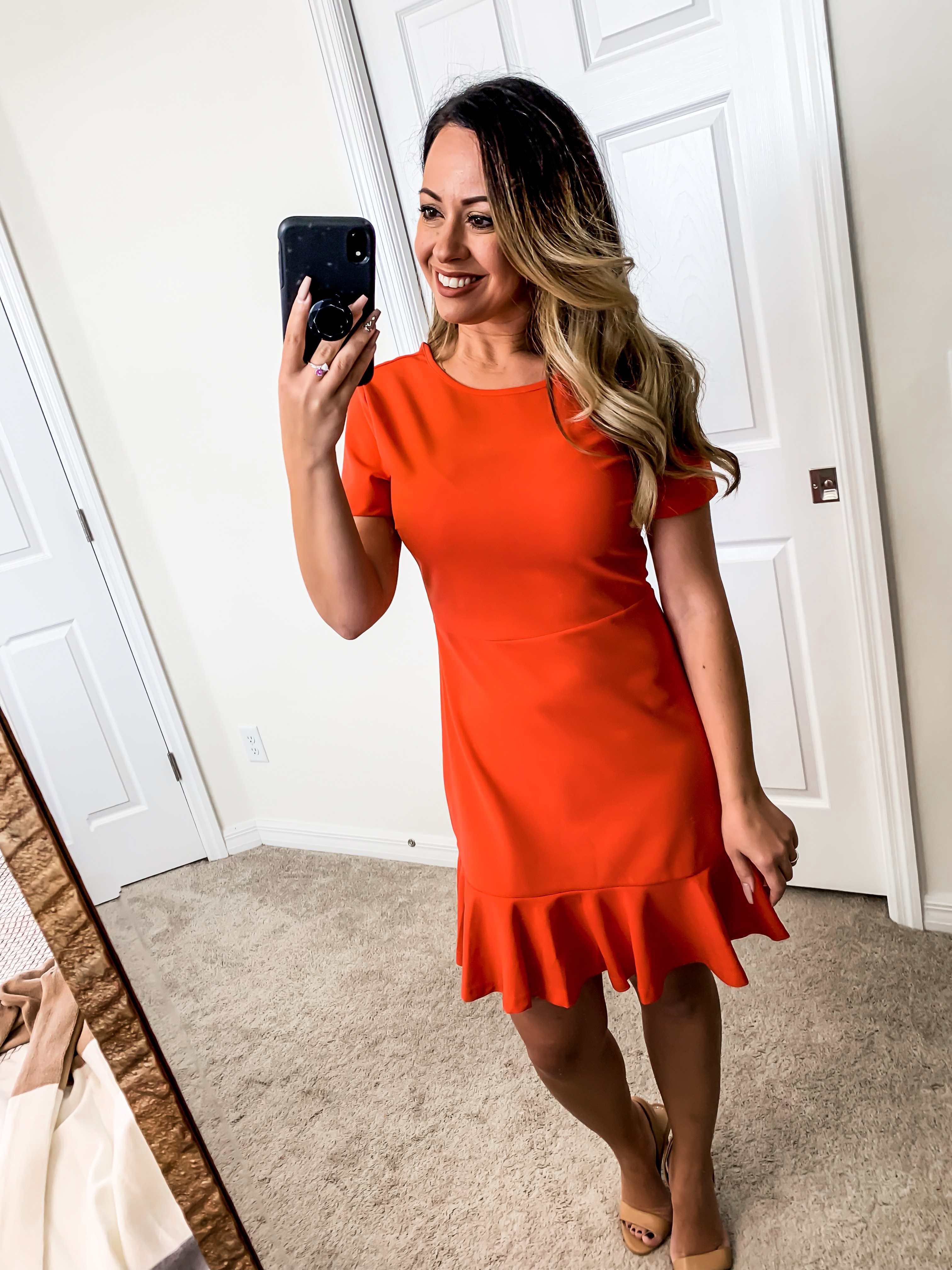 Such a pretty coral! Short Sleeve Ruffled Dress