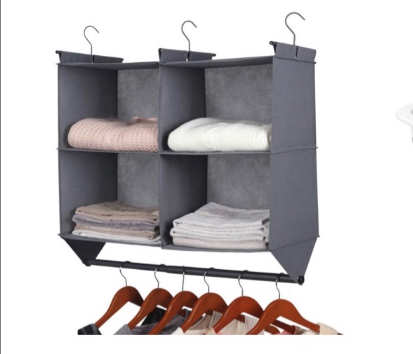 I moved on to the closet where I placed this organizer. If you don’t have custom closet organizers then this might help you too.